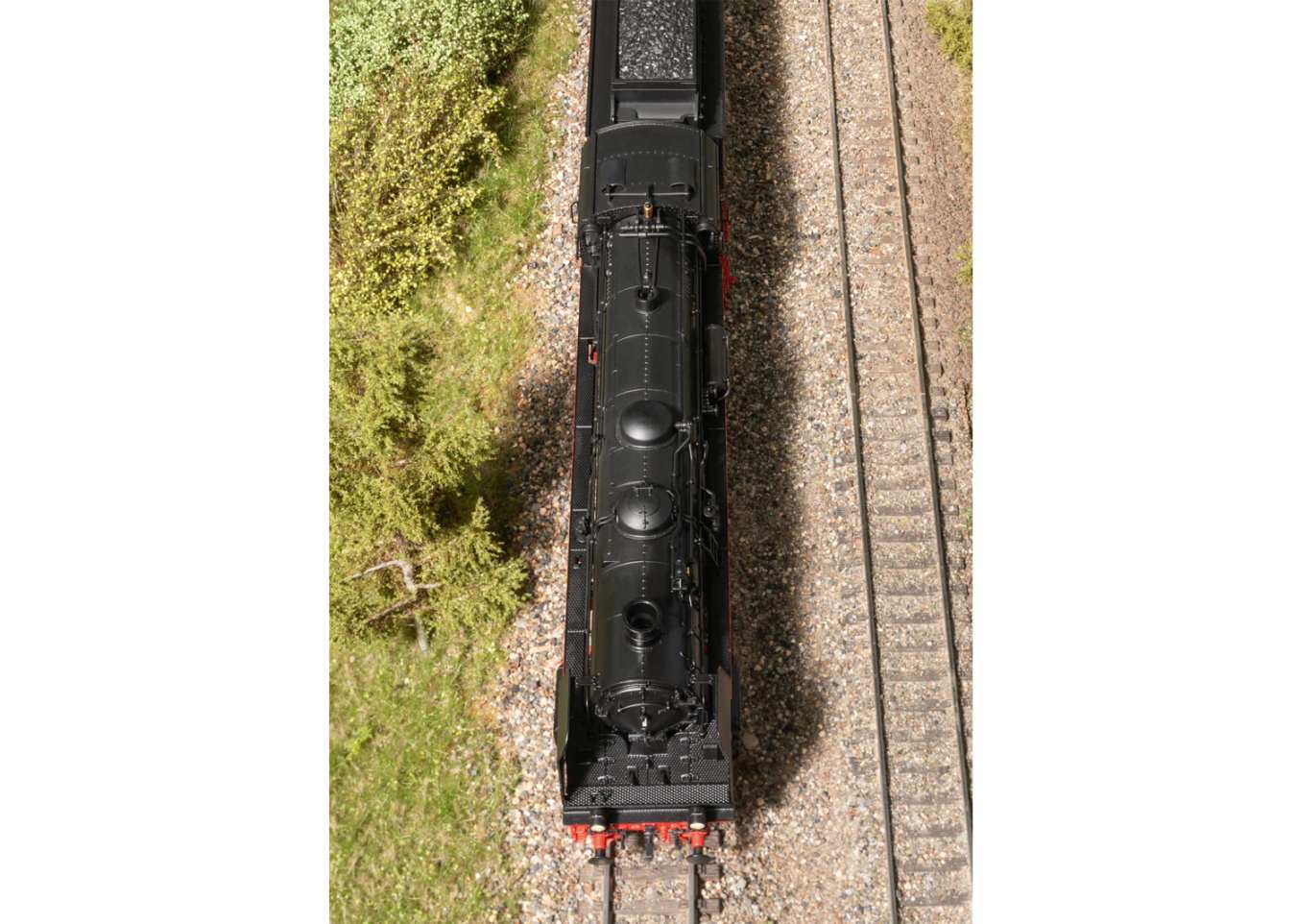 Der Sachsenstolz ? eine wirklich imposante Lokomotive Die Sachsen sind ein kleines, aber feines Völkchen und ihnen eilt der Ruf voraus, mit besonderem Stolz ein eigenes, meist schmackhaftes Süppchen zu kochen. Natürlich gehörte eine eigene Staatsbahn zum Selbstverständnis im einstigen Königreich. Und die ließ kurz vor dem Ersten Weltkrieg in der Sächsischen Maschinenfabrik zu Chemnitz eine der leistungsfähigsten Dampflokomotiven jener Zeit entwickeln. Mit vier Treibachsen, einer Leistung von 1800 PS und einem Dienstgewicht von 162 Tonnen war sie eine wirklich mächtige Schnellzugmaschine, die besonders im sächsischen Bergland ihre Trümpfe ausspielen konnte. 23 Exemplare kamen zwischen 1918 und 1923 auf die Gleise, die letzten Serien hatte sogar die neue Deutsche Reichsbahn geordert. Einige der als Baureihe 19.0 bezeichneten Kraftprotze liefen anfangs sogar im Schwabenländle. Bald wurden die formschönen und wuchtigen Maschinen liebevoll äSachsenstolz? genannt, die sich in ihrer Heimat bestens bewährten. Nach 1945 konnte die spätere Reichsbahn der DDR nicht auf die äNeunzehner? verzichten, ließ zahlreiche Loks aufwendig aufarbeiten und teilweise sogar rekonstruieren. 1958 endete dann der Planeinsatz, der jahrzehntelange schwere Schnellzugdienst hatte seinen Tribut gefordert. Im kleinen Maßstab kehrt der äSachsenstolz? nun als Trix-Lok auf die Schienen zurück. Und dann wird das fein detaillierte und technisch aufwendige Modell sicher bald als äTrix-Stolz? in der Modellbahnwelt großes Aufsehen erregen.Vorbild: Schnellzug-Dampflokomotive Baureihe 19.0 Sachsenstolz (Sächsische Gattung XX HV), mit sächsischem Kohlen-Schlepptender 2´2 T31. Deutsche Reichsbahn der DDR (DR/DDR). Mit großen Windleitblechen. Lok-Betriebsnummer 19 016. Betriebszustand Epoche IIIa, Anfang der 1950er Jahre.Modell: Mit Digital-Decoder und umfangreichen Geräuschfunktionen. Geregelter Hochleistungsantrieb mit Schwungmasse im Kessel. 4 Achsen angetrieben. Haftreifen. Lokomotive und Tender weitgehend aus Metall. Serienmäßig eingebauter Raucheinsatz, mit geschwindigkeitsabhängigem, dynamischem Rauchausstoß. Fahrtrichtungsabhängig wechselndes Zweilicht-Spitzensignal konventionell in Betrieb, digital schaltbar. Führerstandbeleuchtung und Feuerbüchsenflackern jeweils separat digital schaltbar. Beleuchtung mit wartungsfreien warmweißen und roten Leuchtdioden (LED). Mit Pufferspeicher. Schwenkbare Führerstandtüren und Imitation der Vorhänge zwischen Führerstand und Tender. Kurzkupplung mit Kinematik zwischen Lok und Tender. Am Tender kinematikgeführte Kurzkupplung mit NEM-Schacht. Pufferhöhe an Lok und Tender nach NEM. Befahrbarer Mindestradius R2 437,5 mm. Kolbenstangenschutzrohre und Bremsschläuche liegen bei. Länge über Puffer 26,0 cm.Ein passendes Schnellzugwagen-Set und einen Personenwagen als Ergänzung finden Sie unter der Artikelnummer 42514 und 42522 im Märklin H0-Sortiment, mit Angabe der benötigten Gleichstromradsätze.Dieses Modell finden Sie in Wechselstrom-Ausführung im Märklin H0-Sortiment unter der Artikelnummer 38190.