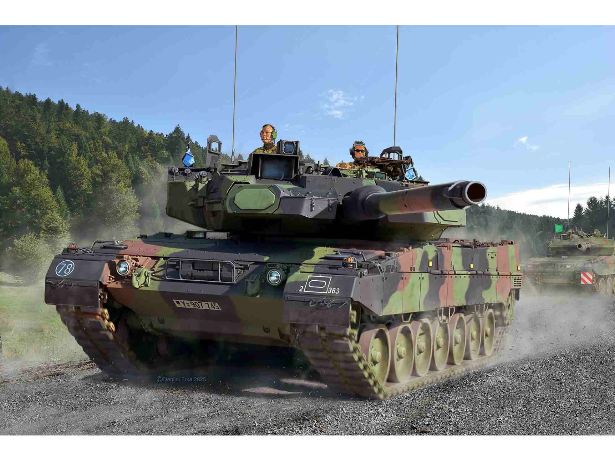 Modellbaussatz des hochmodernen Leopard 2A7A1, hervorgegangen aus dem Leopard-2-Programm der 1970er nach Abbruch des KPz-70 und seither kontinuierlich kampfwertgesteigert. 120-mm-Glattrohrkanone L55A1, MTU-V12 mit 1.500?PS, ca. 66-70?t, verbesserter Minen- und Rundumschutz, aktives Schutzsystem Trophy, moderne Optronik mit Wärmebild 3. Gen., Laserentfernung sowie APU für den energieautarken Dauerbetrieb. - Detaillierte Oberflächen mit feinen Gravuren - Drehbarer Turm für realistische Darstellung Authentische Darstellung folgender Versionen: - Leopard 2A7A1 Panzerbataillon 363, Hardheim 2025 - Leopard 2A7A1 Panzerbataillon 203, Augustdorf 2026 Neben Basisfarben sind auch Kleber und Pinsel enthalten.