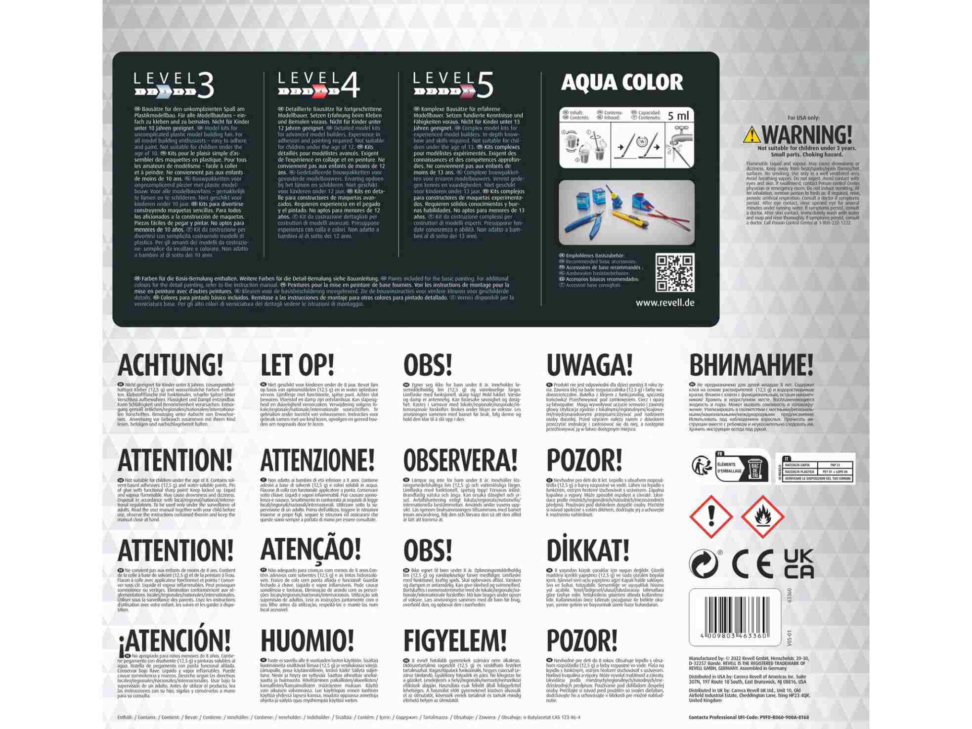 Kunststoffmodellbausatz (nicht zusammengebaut) Bebilderte, mehrsprachige Bauanleitung Abziehbilder Basisfarben (Revell Aqua Color) Klebstoff (Revell Contacta Professional Mini) Pinsel