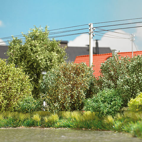 Drei filigrane EXKLUSIV-Büsche aus der NATUR PUR-Serie in einem Set. Sie sind jeweils 40 mm hoch und werden einfach in den Boden gesteckt. Erhältlich in den Laubfarben Frühling, Sommer, Spätsommer und Herbst. Passend zu dieser Serie gibt es auch Sträucher und Bäume in gleicher Struktur und Farbe.