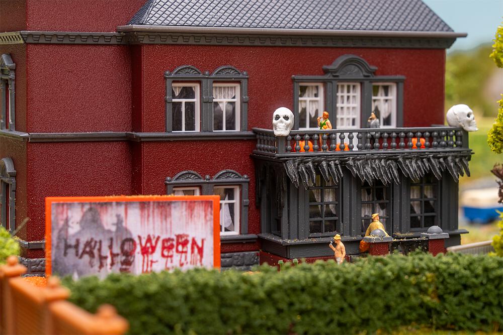 Huch, war das etwa ein Gespenst am Fenster der Villa? Diese erhebt sich mit ihren blutroten Ziegelsteinen und dem düsteren schwarzen Dach auf der Modellbauanlage, während gruselige Totenköpfe von den Dächern und Emporen hinunterblitzen. Ein warnendes Schild verkündet Besuchern: Hier wird Halloween gefeiert! Wie ein Geist schwebt über dem Dach ein orangener Heißluftballon und grinst mit seiner Fratze höhnisch auf die Szenerie herab. Um das Anwesen herum sind unterschiedlich große Kürbisse platziert. Wer würde sich vor diesem Miniatur-Schreckensspaß nicht fürchten? Inhalt: Villa mit Halloween-Schild, Heißluftballon, Dekorationselemente (Kürbisse und Totenköpfe) : EP: III : Maße (L x B x H): 165 x 145 x 150 mm Ø 97 x 135 mm : patiniert: : Schwierigkeitsgrad: Moderat : Bausatz Inhalt: Dieser Bausatz enthält: 280 Einzelteile in 12 Farben, Fensterfolie, 1 Gardinenmaske, 1 Deko und 2 Bauanleitungen. Verwenden Sie zum Basteln FALLER EXPERT Plastikkleber. : Zusatzangaben: : Beleuchtung/Elektrik:1 x 180695 1 x 180695 : Sicherheitshinweise: https://medien.faller.de/xs_db/DOKUMENT_DB/www/allgemeines/FALLER_Sicherheitshinweise_1008010.pdf