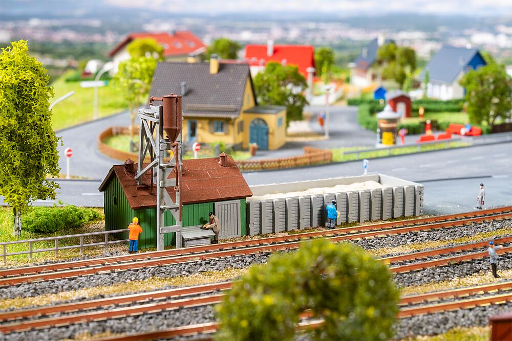 Dieses charmante Modell einer kleinen Besandungsanlage mit grünem Häuschen bringt echtes Eisenbahnflair auf Ihre Anlage! In der Realität dienen Besandungsanlagen zur Versorgung von Lokomotiven mit trockenem Sand, was die Traktion auf der Schiene erhöht. Eine ideale Möglichkeit, etwas Realismus auf die Modellbahn zu bringen! : EP: I : Maße (L x B x H): 130 x 55 x 60 mm : patiniert: : Schwierigkeitsgrad: Einfach : Bausatz Inhalt: Dieser Bausatz enthält: 31 Einzelteile in 4 Farben und 1 Bauanleitung. Verwenden Sie zum Basteln FALLER EXPERT Plastikkleber. : Zusatzangaben: : Beleuchtung/Elektrik: : Sicherheitshinweise: https://medien.faller.de/xs_db/DOKUMENT_DB/www/allgemeines/FALLER_Sicherheitshinweise_1008010.pdf