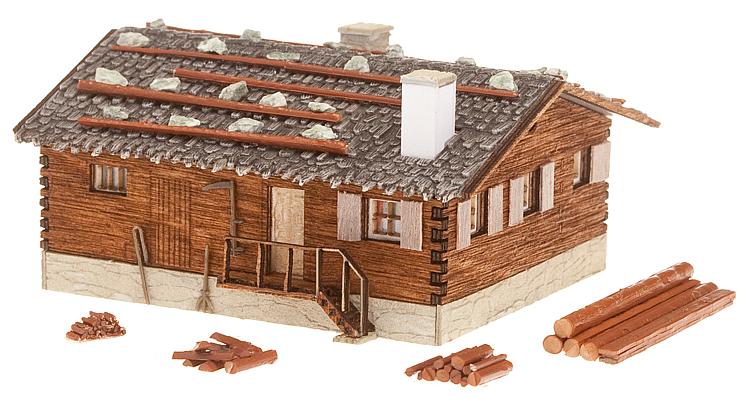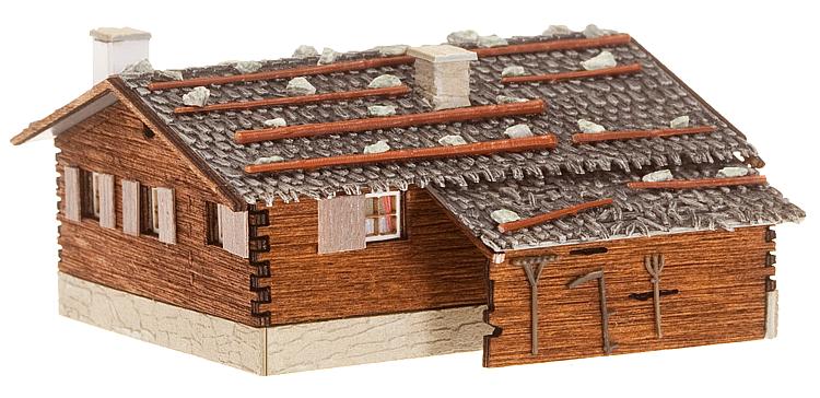 Stützpunkt für schwindelfreie Gipfelstürmer. Eingeschossige Gebirgshütte mit Steinfundament und gebeizter Lasercut-Verschalung aus Holz. Der alpine Zweckbau besitzt kleine Fensteröffnungen und urige Fensterläden sowie einen schindelgedeckten Dachaufbau, beschwert mit Bruchsteinen. : EP: I : Maße (L x B x H): 72 x 75 x 36 mm : patiniert: : Schwierigkeitsgrad: Moderat : Bausatz Inhalt: Dieser Bausatz enthält: 197 Einzelteile in 7 Farben, Fensterfolie, 1 Gardinenmaske und 1 Bauanleitung. Verwenden Sie zum Basteln FALLER EXPERT Lasercutkleber. : Zusatzangaben: : Beleuchtung/Elektrik: 1 x 180667 : Sicherheitshinweise: https://medien.faller.de/xs_db/DOKUMENT_DB/www/allgemeines/FALLER_Sicherheitshinweise_1008010.pdf