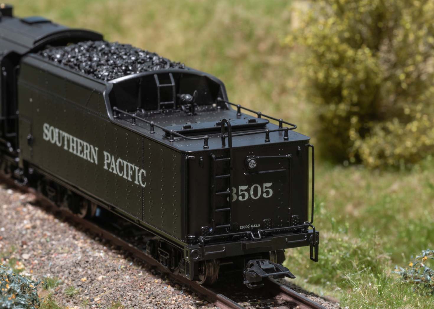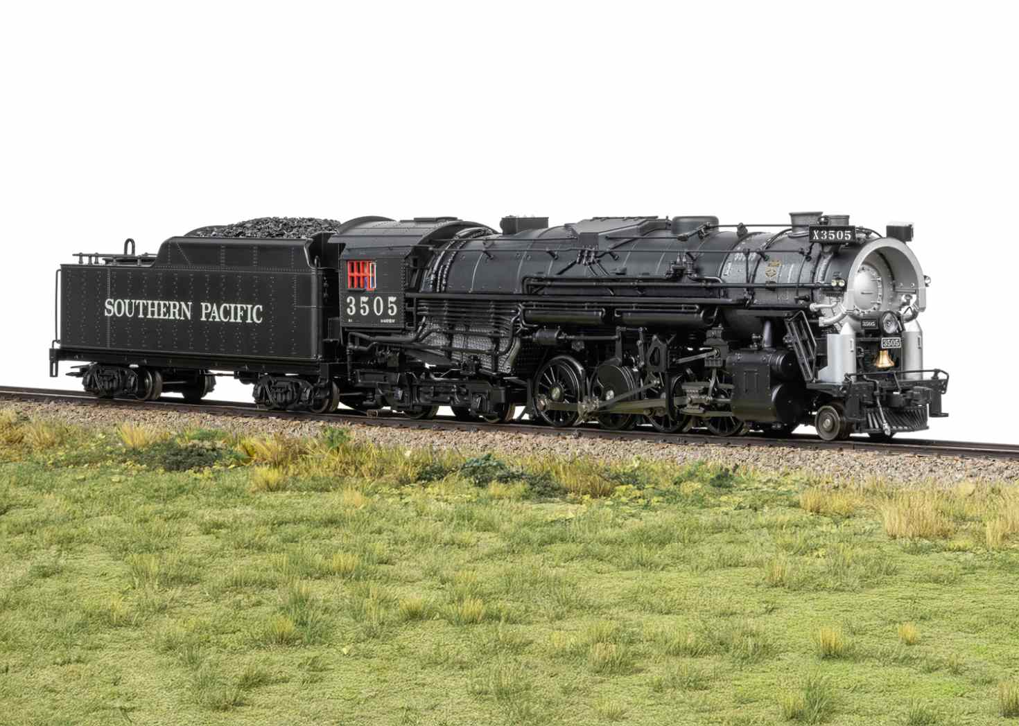 Vorbild: Dampflokomotive mit der Achsfolge 2-8-4 Berkshire der Southern Pacific. Tiefschwarze Grundfarbgebung. Betriebsnummer 3505. Betriebszustand zwischen 1945 und 1950. Eine von 25 gebauten Lokomotiven mit dem markanten Coffin-Vorwärmer.