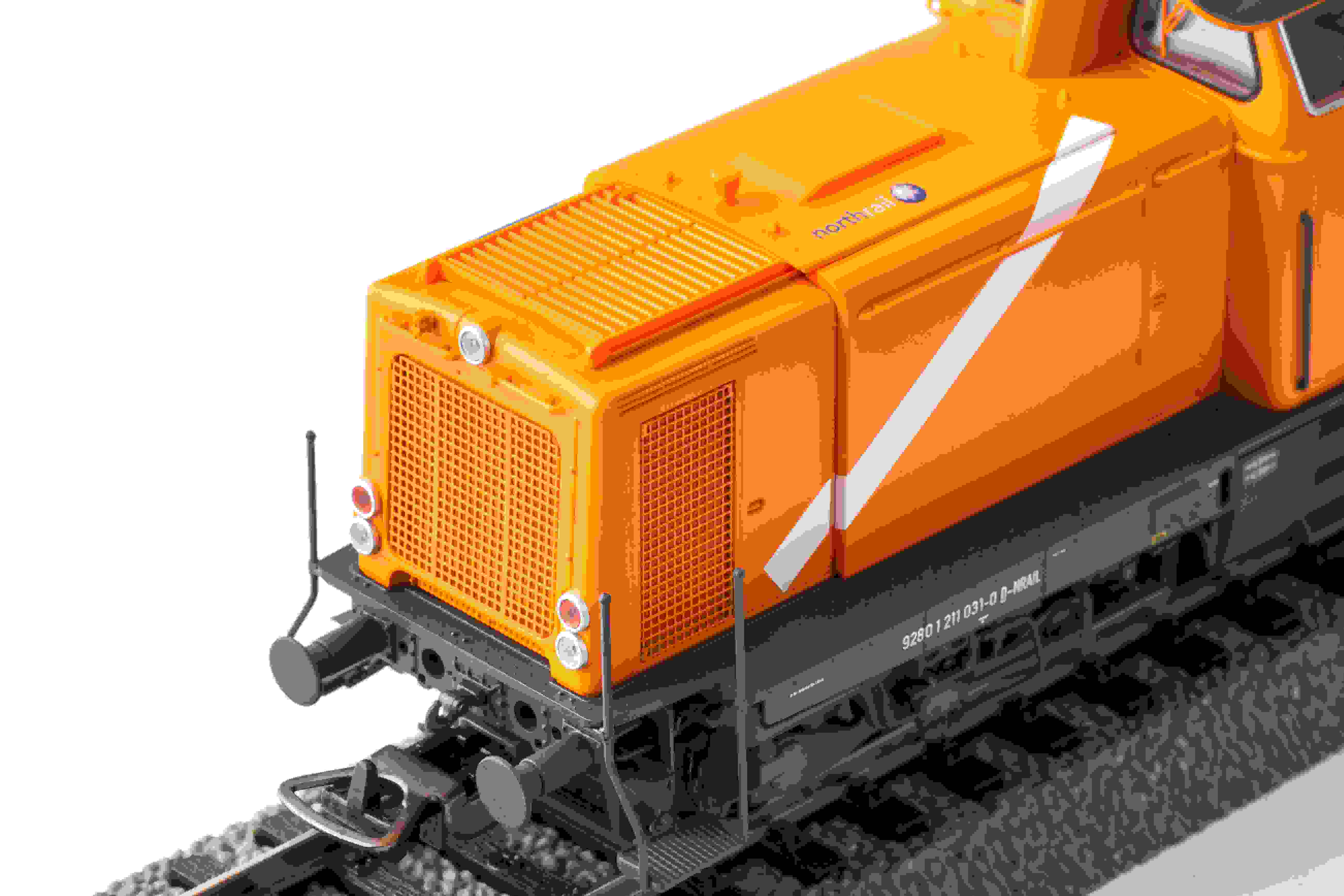 Die deutsche Brot-und-Butter-Lokomotive in der Ausführung als BR 211 Northrail in Epoche VI. Bei der Konstruktion wurden die spezifischen Besonderheiten des Vorbildes berücksichtigt und präzise ins Modell übertragen. Ein besonderer Blickfang ist die Kühlanlage der Lok mit fein geätzten Gittern und dem darunter sichtbaren Lüfterrad. Die plastisch wirkenden Gravuren an Vorbauten und Führerstand gliedern den funktionalen Fahrzeugaufbau zusätzlich. Abgerundet wird der Gesamteindruck durch die filigranen Drehgestelle mit zahlreichen angesetzten Teilen. Das Modell besitzt ab Werk schaltbare Beleuchtungen des Führerstands und der Instrumententafel. Dank des ab Werk integrierten PSD XP Sound-Decoders mit größtmöglichem Lautsprecher kommt der Sound des Vorbildes auch auf der Modellbahnanlage perfekt zur Geltung. : Gleichstrom : Privatbahn : EP: VI : LüP / Länge über Puffer : 139 mm : Min-Radius: 358 mm : D.-Schnittstelle: NEM 658 PluX22 : Anzahl Haftreifen: 2 : Kupplung: NEM Schacht + Kurzkupplungskulisse : Lichtwechsel: Fahrtrichtungsabhängiger Lichtwechsel weiß / rot : (Innen-) Beleuchtung: Digital schaltbare Führerstandsbeleuchtung (mit PluX22 Decoder) : Besonderheiten: - : Altersempfehlung: ab 14 Jahren