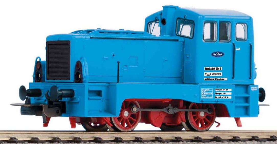 Druckvariante der V 23 im Design des Soda Werks Staßfurt in Epoche V. Die Rangierlokomotive war in großen Stückzahlen bei der DR und bei Werksbahnen vorhanden. Das Modell weißt zahlreiche einzeln angesetzte Teile auf. Der Zinkdruckguss-Rahmen verleiht dem Modell ausreichende Zugkraft. Für die unkomplizierte Nachrüstung eines Decoders steht auf der aufgeräumten Platine eine moderne PluX22-Schnittstelle zur Verfügung. Zudem ist ausreichend Platz für den Einbau eines Lautsprechers.