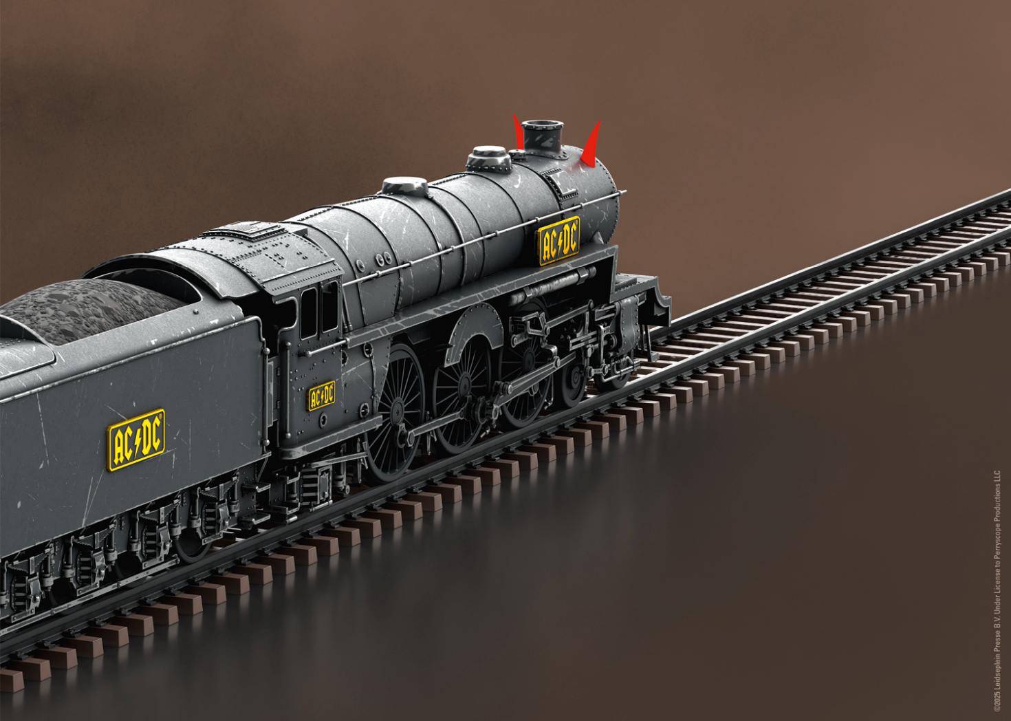 Vorbild: Schlepptender-Dampflokomotive Black Ice, die der Bühnenkulisse der AC/DC Black Ice World Tour 2008 - 2010 nachempfunden ist.