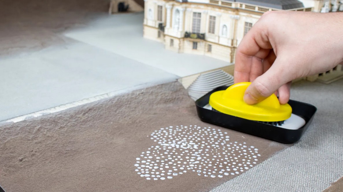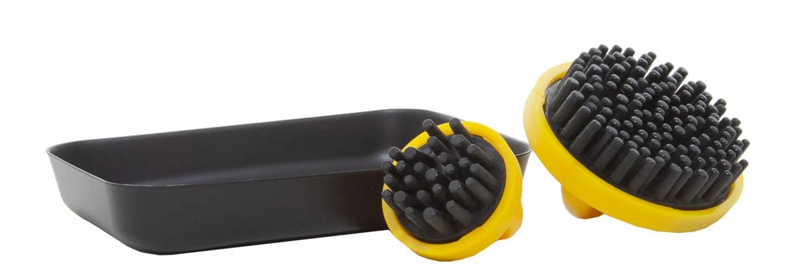 Das Set enthält zwei Stempelgrößen: einen großen für weite Wiesen und einen kleinen für präzise Arbeiten, z. B. an Bahndämmen. Die beiliegende Klebstoff-Wanne erleichtert die Anwendung. Nach dem Einsatz reinigen Sie die Stempel einfach mit Wasser.