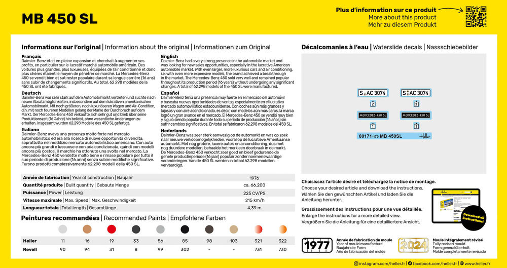 Heller: STARTER KIT MB 450 SL in 1:43 Teile 47 Länge 102 mm Breite 41 mm Daimler-Benz war... mehr