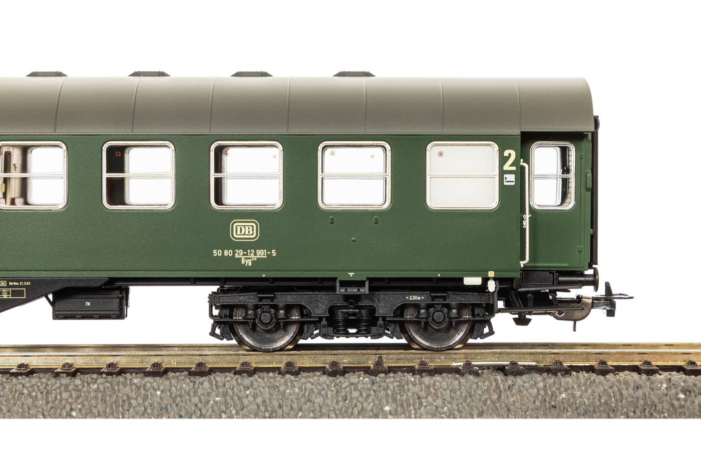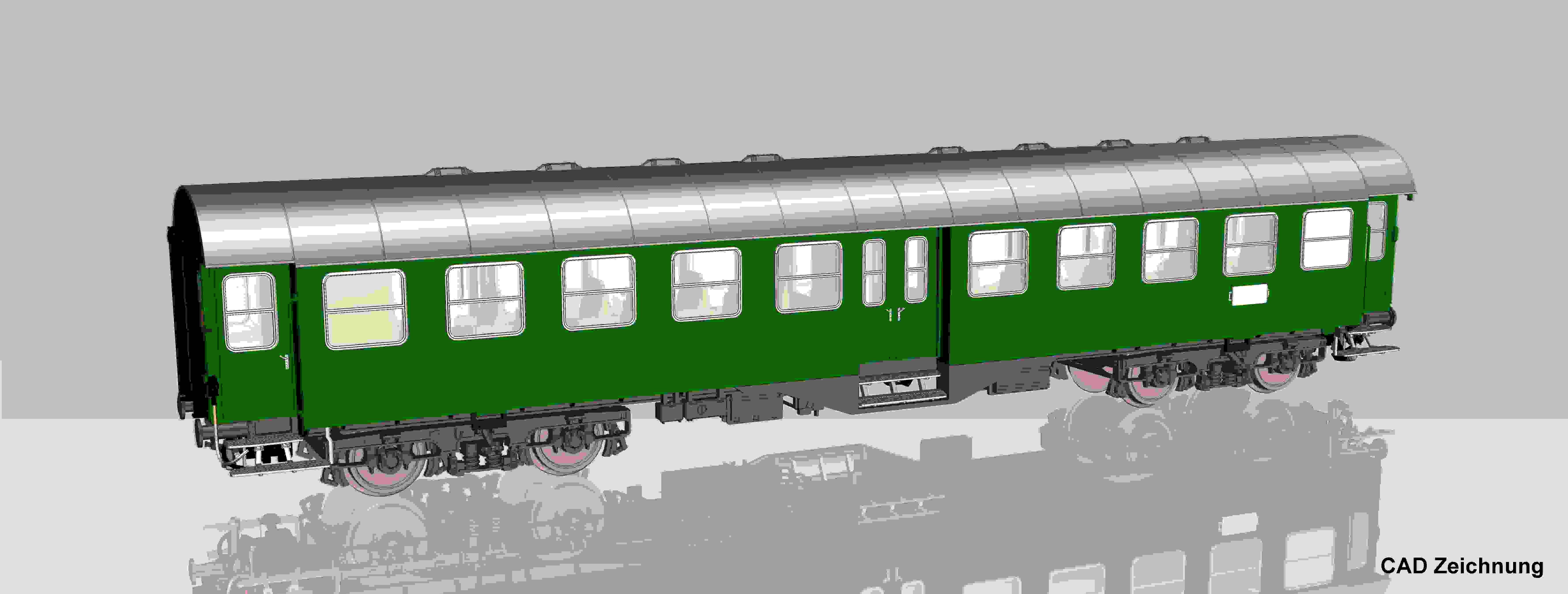 Mitte der 1950er Jahre stand die Deutsche Bundesbahn vor einer großen Herausforderung: Der wachsende Personenverkehr verlangte nach modernen Reisezugwagen - doch der vorhandene Bestand war überaltert. Die Lösung brachte das Umbauwagen-Programm, bei dembewährte Untergestelle und Drehgestelle älterer Wagen wiederverwendet und mit neuen, stabilen Stahlaufbauten versehen wurden. Die daraus entstandenen vierachsigen Umbauwagen (B4yg) erhielten vollständig geschweißte Untergestelle, Mitteleinstiege mit Doppeltüren ohne Mittelsäule und erstmals sichere Türdichtungen. Dank der robusten Bauweise erreichtensie eine Höchstgeschwindigkeit von 120 km/h - ein deutlicher Fortschritt gegenüber den dreiachsigen Vorgängern. Zwischen 1958 und 1959 entstanden 666 Wagen der Bauart B4yg-58, ergänzt durch Varianten mit 1./2. Klasse und Gepäckabteil. Insgesamt standen so über 1.800 Wagen für den modernen Reiseverkehr bereit. Obwohl ihre Ausmusterung bereits für die 1980er Jahre geplant war, blieben viele Fahrzeuge bis 1990 im Einsatz. Umbauwagen 2. Klasse B4yg DB Ep. IV, mit Minden-Deutz Drehgestellen : Innenbeleuchtung und Schlusslicht nachrüstbar : Kurzkupplungskinematik : Feine Griffe und Trittstufen : Angesetzte Bremszylinder, Batteriekästen und Toilettenrohre : Bremsschläuche und Kuppelhaken beiliegend : Gleichstrom : DB : EP: IV : LüP / Länge über Puffer : - mm : Min-Radius: 358 mm : D.-Schnittstelle: - : Anzahl Haftreifen: - : Kupplung: NEM Schacht + Kurzkupplungskulisse : Lichtwechsel: - : (Innen-) Beleuchtung: Innenbeleuchtung nachrüstbar mit # : Besonderheiten: - : Altersempfehlung: ab 14 Jahren