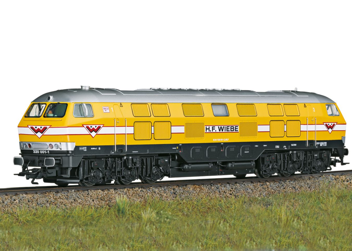 Vorbild: Schwere Diesellokomotive der Baureihe V 320, mit Windabweiser an den Führerstandsfenstern und Zugbahnfunk-Antenne. Gelbe Grundfarbgebung. Privatbahn-Lokomotive der Firma Gleisbaumaschinen Wiebe GmbH, Achim. Lok-Betriebsnummer 320 001-1. Betriebszustand um 2015.Modell: Mit Digital-Decoder und umfangreichen Geräusch- und Lichtfunktionen. 2 Lautsprecher für eine optimale Loksound-Wiedergabe. Geregelter Hochleistungsantrieb mit Schwungmasse zentral eingebaut. Jeweils zwei Achsen in jedem Drehgestell über Kardan angetrieben. Haftreifen. Fahrtrichtungsabhängig wechselndes Dreilicht-Spitzensignal und zwei rote Schlusslichter konventionell in Betrieb, digital schaltbar. Spitzensignal an Lokseite 2 und 1 jeweils separat digital abschaltbar. Doppel-A-Licht-Funktion. Führerstandsbeleuchtung und Maschinenraum-Beleuchtung jeweils separat digital schaltbar. Beleuchtung mit wartungsfreien warmweißen und roten Leuchtdioden (LED). 4 bewegliche Lüfterräder mit je einem Motor angetrieben und paarweise separat digital schalbar. Unterschiedliche Geschwindigkeiten der Lüfterräder möglich. Angesetzte Griffstangen seitlich und frontal aus Metall. Detaillierte Pufferbohle. Ansteckbare Bremsschläuche und Schraubenkupplungsimitationen liegen bei.Länge über Puffer 26,4 cm.Passende Güterwagen-Sets finden Sie unter den Artikelnummern 48459 und 48460 im Märklin H0-Sortiment mit Angabe der benötigten Gleichstromradsätze sowie unter der Artikelnummer 24142 im Trix H0-Sortiment.Einmalige Serie.Dieses Modell finden Sie in Wechselstromausführung im Märklin H0-Sortiment unter der Artikelnummer 39321.